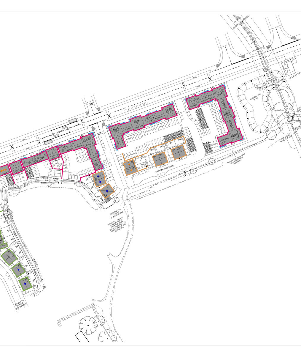Design proposals are the result of very extensive pre-app and Reserved Matters negotiations with the Local Authority to provide the correct urban design response. This proved quite challenging due to the various site constraints and changes made to whole site infrastructure elements such as the realignment of the adjoining spine road to the north and relocation of a storm water attenuation basin to the east.