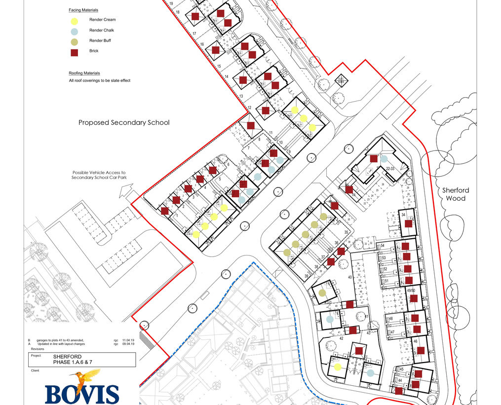 Phase of 54 dwellings situated in the north eastern area of the new town of Sherford on the boundary edge of Neighbourhood Area 1 and continuing the Regency house designs established from the earlier approved parcels. A mix of 2, 3 and 4 bedroom terraced, semi detached and detached townhouses, together with a 4 storey, 1 and 2 bedroom apartment block are provided.